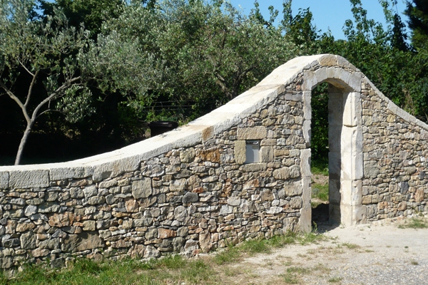 Les pierres de taille du portillon (pierre de Beaucaire) sont issues de récupération lors de la réalisation d’un sous-œuvre.